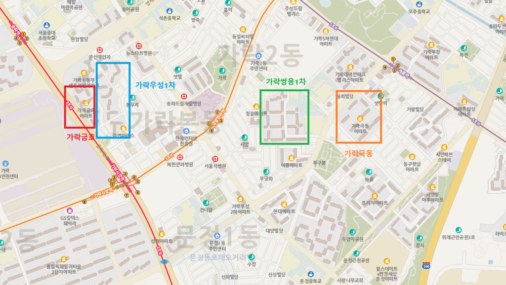 강남3구 중에 그나마 만만한 곳이 송파구이고, 송파구에서 아직 그나마 중산층과 서민에게 기회의 사다리가 남아있는 곳이 잠실과 오금동을 제외한 송파구 지역이라고 생각한다. 그중에서도 잠실과 가깝고 교통도 편리하며, 학군도 나쁘지 않은 평지 지형에 있는 가락동은 송파구에 처음으로 입성하는 실거주자나 투자자들이 관심을 보이는 곳이다. 신축이나 준신축은 비싸고, 가락동 구축 아파트들이 그나마 가격이 낮다. 이번 글에서는 가락동에 있는 대표적인 구축 아파트인 가락쌍용, 가락금호, 가락극동, 가락우성1차 아파트를 서로 비교해보면서 장점과 단점, 정비사업 진행 현황 등을 정리해 본다.