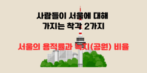 사람들은 흔히 서울은 인구밀도가 높고 매우 빽빽한 도시라고 생각한다. 서울에는 좁은 면적에 1,000만 명에 가까운 인구가 오밀조밀하게 살고 있기 때문이다. 그러나 사실 객관적인 지표로 본다면 서울의 건물 밀도는 인구수 대비 그리 빽빽하지 않다. 녹지(공원) 면적 역시 그리 좁은 편이 아니다. 이번 글에서는 사람들이 서울에 대해 가지고 있는 착각 두 가지를 살펴보고, 앞으로 서울 도시 개발의 올바른 방향에 대해 생각해 본다.